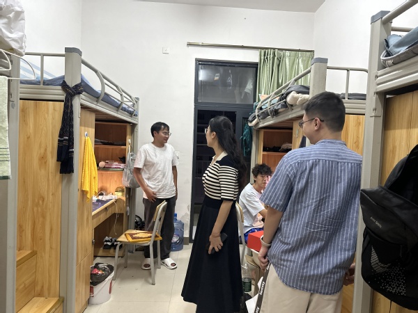 晚上7时,学院党委副书记熊静带领研究生辅导员司元艺走访新生寝室,与新生亲切交流,细致询问入住情况与生活需求,希望大家尽快适应新的学习和生活环境,并鼓励新生互帮互助,团结友爱。熊静还专门看望了入校前腿部受伤的博士新生,提醒其好好休养、注意安全,让初入校园的新生感受到了学院的关怀。