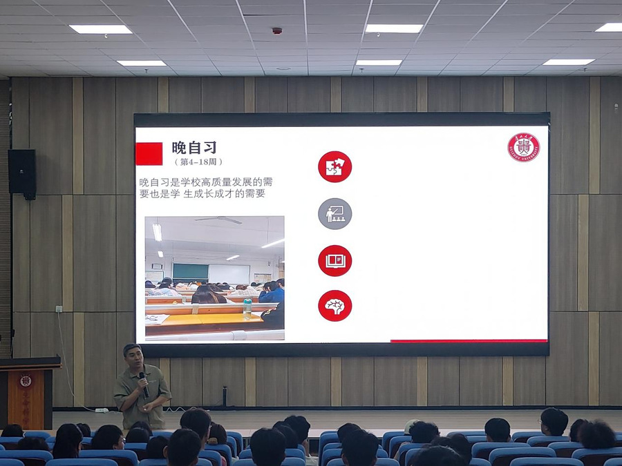最后,为加强学院学风班风建设,学生科科长冯胜强老师从晚自习安排、课堂纪律、体质健康提升、评奖评优等方面进行了工作安排,倡导24级同学养成良好的学习生活习惯,积极进行体育锻炼,鼓励大家多参加创新创业竞赛和技能证书考试,以提升自我专业能力和综合素质。