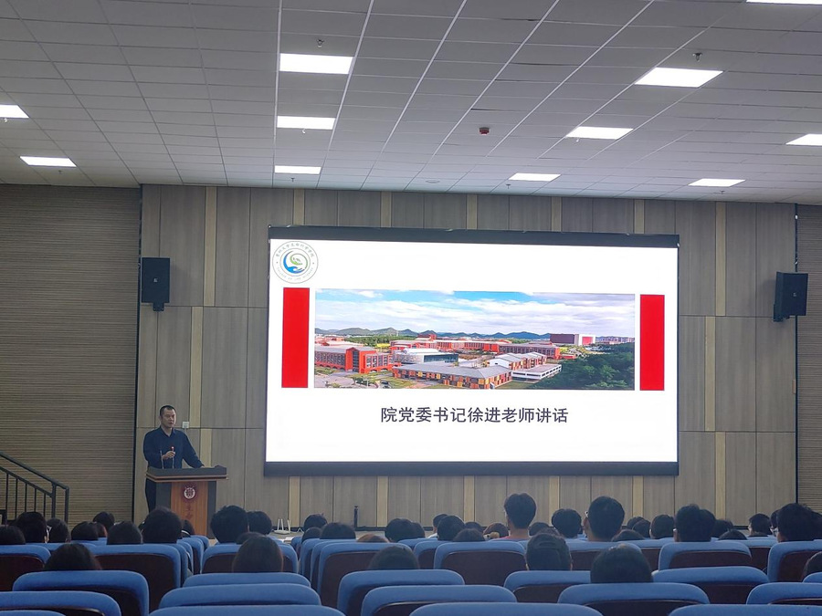 最后,院党委书记徐进讲话。徐书记以“抬起头看世界”“拼命学”“享受有意义的大学生活”三句话勉励同学们,希望大家在学院的关心下,在老师们的精心栽培下,脚踏实地、砥砺前行,在知识的海洋中畅游,在实现梦想的路上奔跑,用努力和汗水成就自己的梦想,创造出更加辉煌的未来。