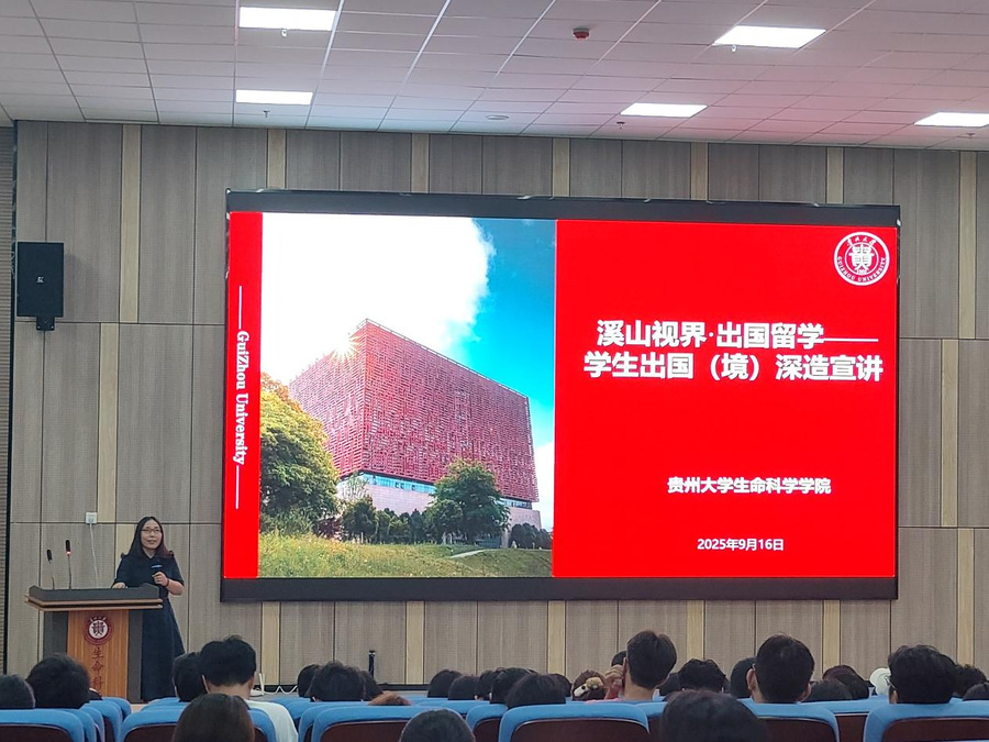 大会的第四项议程是由牛素贞副院长介绍本科生出国(境)深造相关情况,她从“WHY”、“HOW”、“WHAT”三个维度详细介绍了出国(境)深造对大家开拓思维和视野的重要性,希望同学们在专业领域有更纵深的突破和发展。