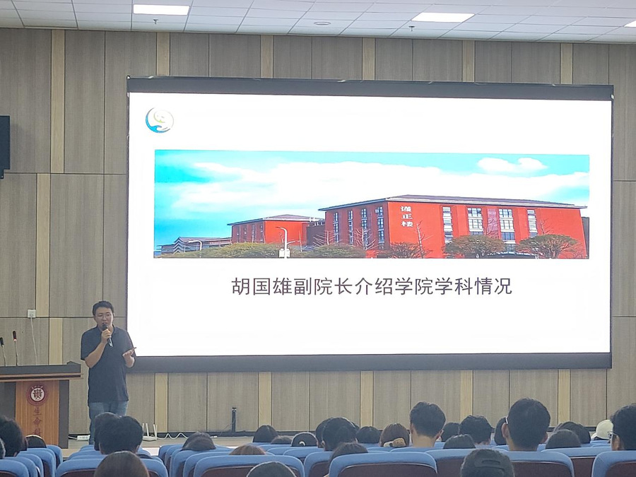随后,胡国雄副院长详细介绍了学院学科的情况,并动员同学们积极考研。他希望2024级学生能够在牢固专业知识和理论的基础上,进一步提升学历,在专业领域具有更深入的学习和研究,成为一个拥有独立思考和创新能力,同时能够在学术和专业领域独当一面的人。