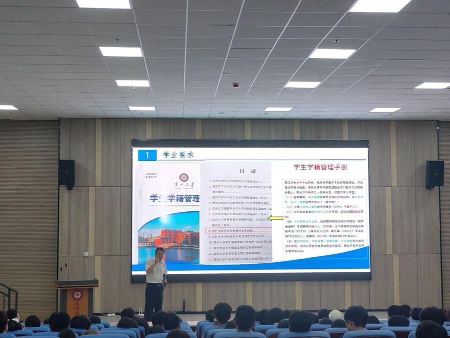接着,江龙副院长介绍了学院本科教学管理情况,从学籍管理、四六级考试和推免等方面强调了本科学习阶段需要注意的事项,并动员同学们积极参与各类学科竞赛,夯实牢固的专业知识和理论,开拓创新思维,为未来的发展打下坚实的基础。